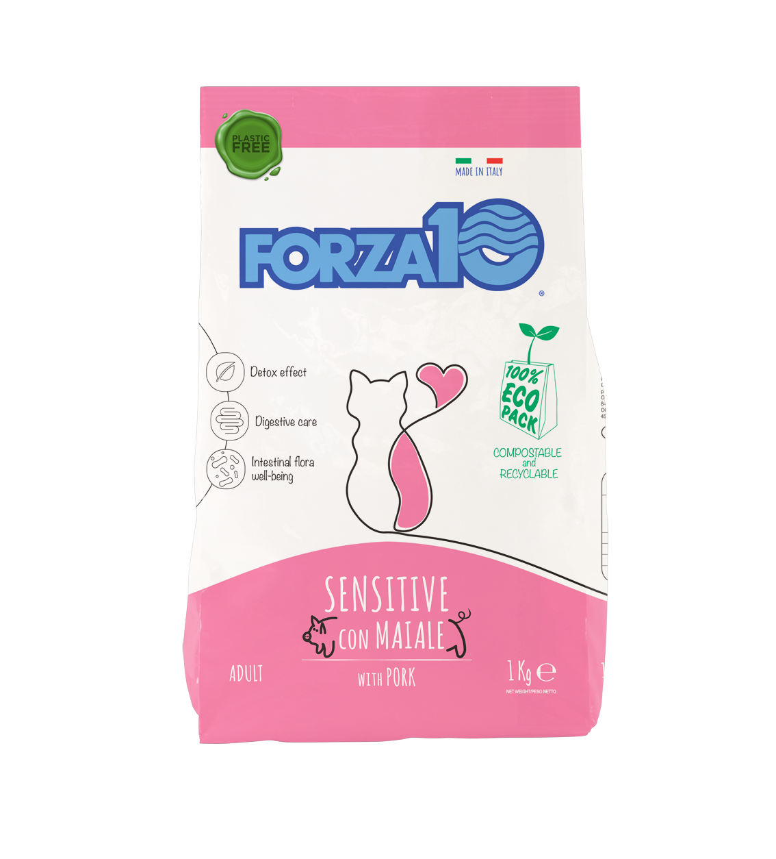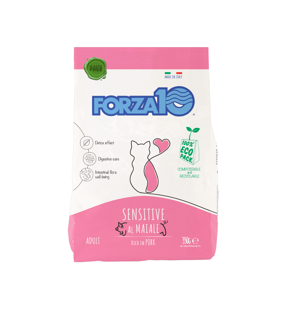 Maintenance Adult Sensitive with portk is a complete and balanced maintenance food for cats with particular digestive and cutaneous sensitivity, or as continuation after the diet period with foods from the Diet or Active line.