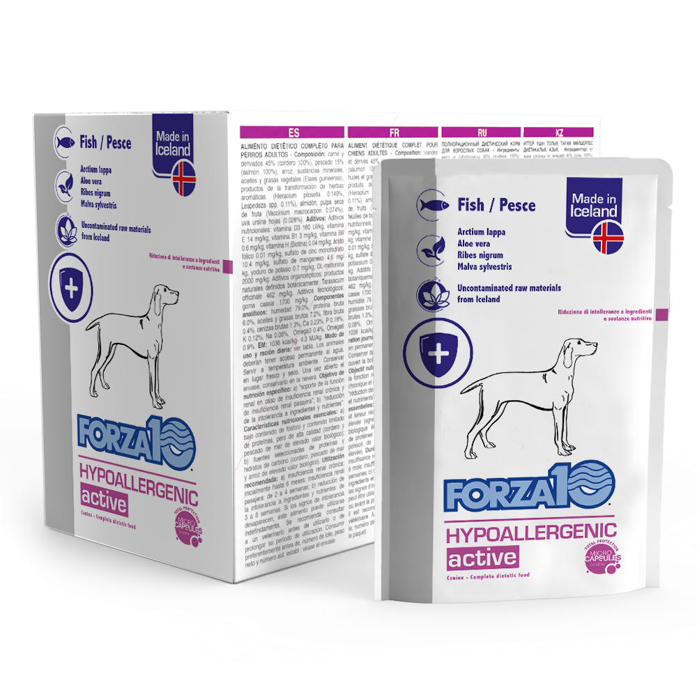 Hypoallergenic Active with lamb is a complete and balanced wet food for adult dogs suffering from intolerances to food ingredients and nutrients.